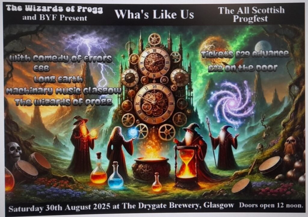 Also in August was the Wha’s Like Us Festival, a one-day prog festival at the Drygate brewery in Glasgow, consisting of an all-Scottish prog line-up of The Wizards of Progg, Alan Reed (and friends) Long Earth, Ebb and Comedy of Errors. For me, the highlight of the day was the almost all-female group, Ebb, who have a male bass player surrounded by a lively bunch of ladies playing guitar, keyboards, drums, or singing solo, aided by puppets, and even an appearance by the devil who didn’t seem too keen on the band.
